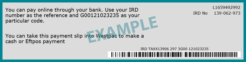Pay online through the bank You can make payments to IRD through your bank’s online banking facilities. This is fast, easy, secure and you can post-date the payment, making it easy to set up the payment as soon as you receive your tax payment slip.